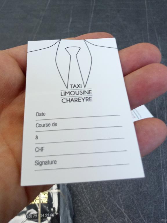 Carte Classique Format : Classique 8.5 x 5.5 cm Papier : Couché demi mat 350 g Impression : Couleurs Recto/Verso Pelliculage : Sans Découpe coins : Coins carré Perforation : Sans Perforation