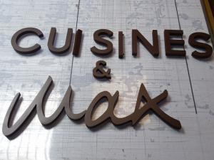Découpe lettrage pour enseigne avec peinture et entretoise